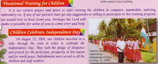 This is an earlier news letter of the Light of Hope Missions for August - September 2005. You can click on the pictures for a larger view of the image.